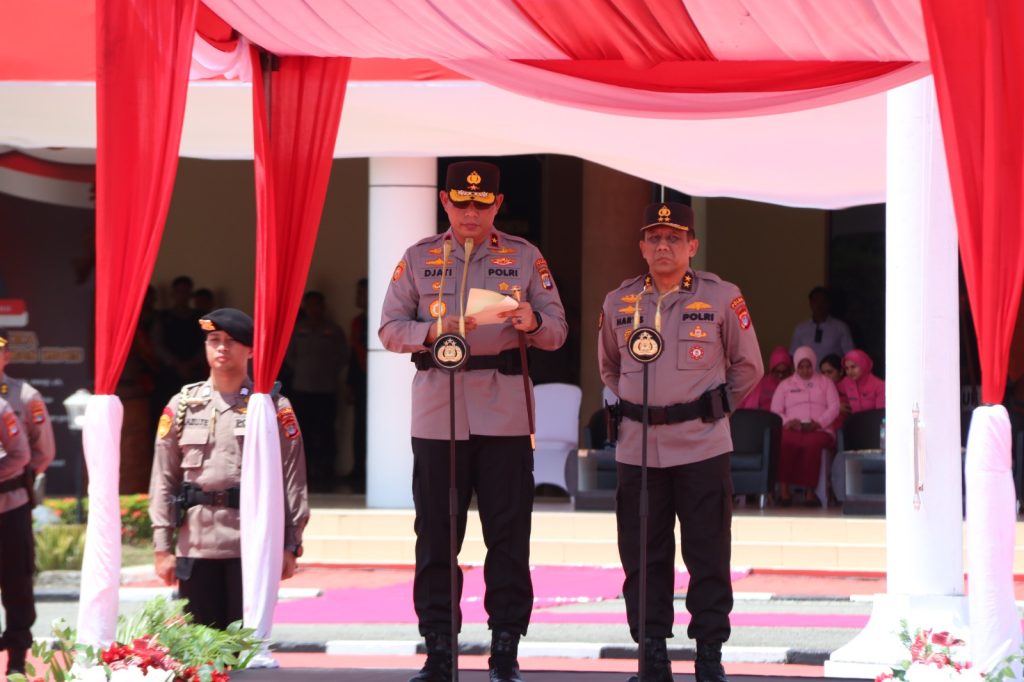 Tanjung Selor — Bertempat di Lapangan Apel Mako Polda Kalimantan Utara, Rabu (26/08), telah berlangsung Upacara Serah Terima Pataka Polda Kaltara ‘Ngelimut Mengka Peguna’ dari Irjen Pol. Hary Sudwijanto, S.I.K., M.Si., kepada Brigjen Pol. Djati Wiyoto Abadhy, S.I.K., sebagai Kapolda Kaltara yang baru. Upacara ini menjadi simbol transisi kepemimpinan yang berlangsung khidmat, penuh haru, dan sarat makna.