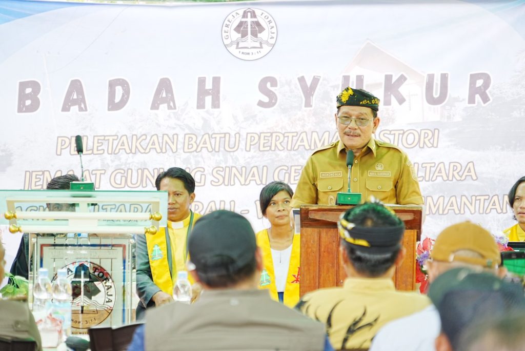 BULUNGAN – Wakil Gubernur (Wagub) Kalimantan Utara (Kaltara), Ingkong Ala, S.E., M.Si melaksanakan prosesi peletakan batu pertama pembangunan Rumah Pastori Gereja Toraja Jemaat Gunung Sinai Gerbang Kaltara, di Desa Sajau, Tanjung Palas Timur, Bulungan, Senin (15/9) .