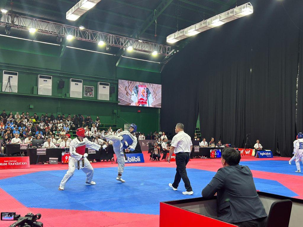 KUDUS — Prestasi membanggakan datang dari arena PON Bela Diri 2025 di GOR Kaliputu Djarum, Kudus. Atlet taekwondo andalan Kalimantan Utara (Kaltara), Muhammad Reza Putra, berhasil menembus babak semifinal kelas kyorugi over 87 kg putra, Minggu (12/10).